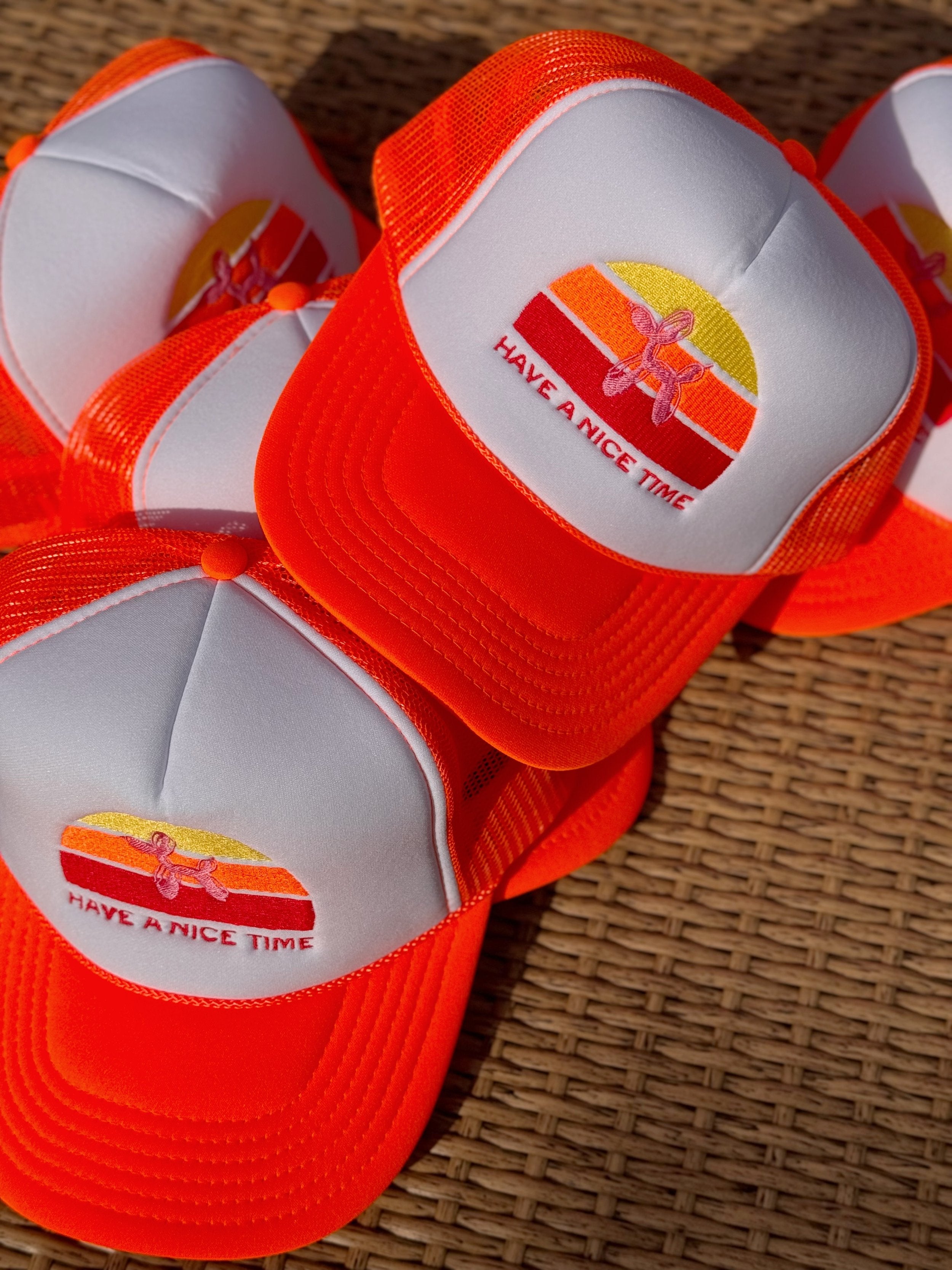 One size fits most, terry cloth lined inner brim. Note, model is not happy about modeling.